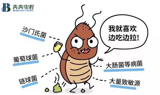 蟑螂已被證明攜帶約40種對頸椎動物致病的細菌,其中重要的如傳染麻風分支桿菌、傳染腺鼠疫桿菌、傳染痢疾的志賀氏痢疾桿菌、引起尿道感染的綠膿桿菌以及多種沙門氏菌.....--來自科學出版社出版的《除四害指南》