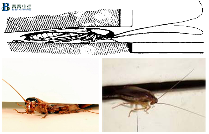 蟑螂在縫隙中棲息時,足緊貼著身體,尾須平伸或者與支撐面接觸,觸角常伸向外面,不時揮動,保持警戒狀態。