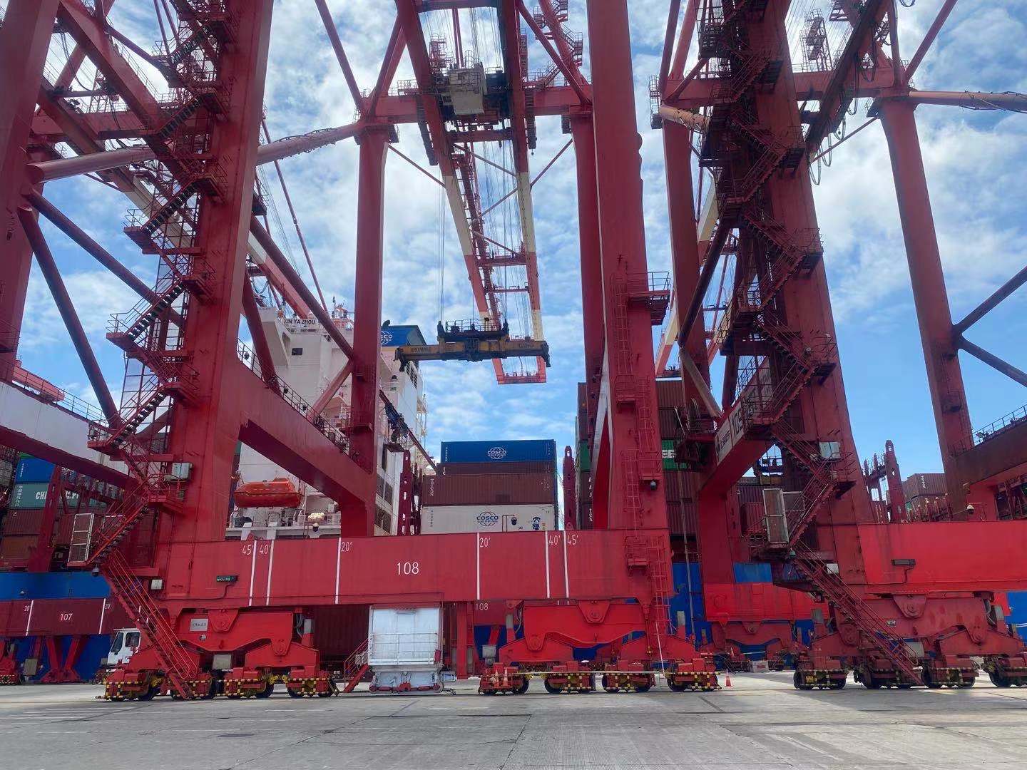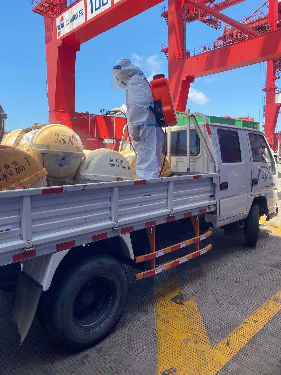 洋山深水港碼頭一萬八千箱裝特大號貨輪救生設備回檢消毒施工